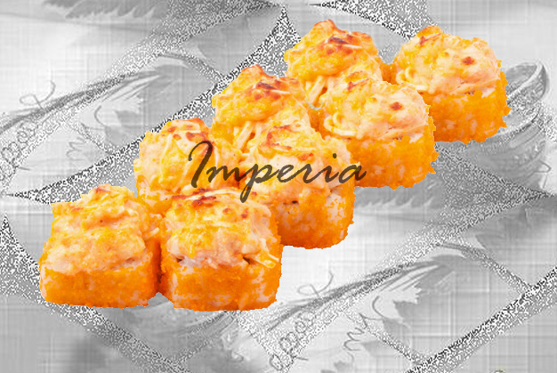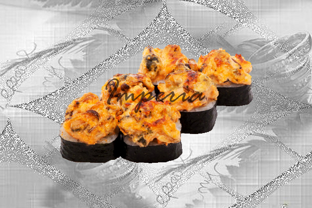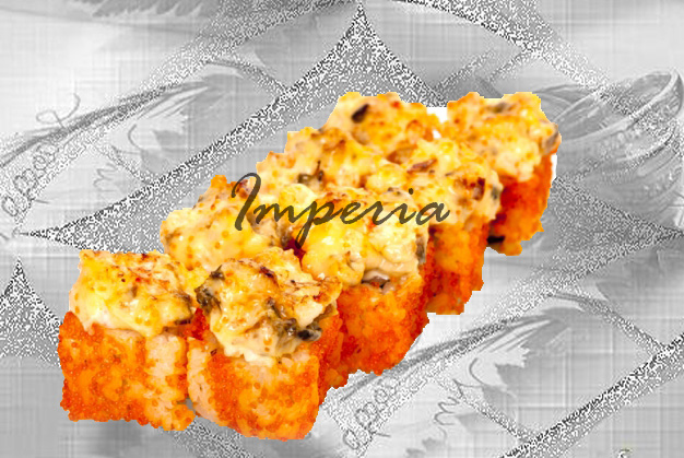 Запеченные роллы готовятся в специальной печи или во фритюре. Нарезаются на 5,6,8 частей. Для приготвления в печи, на каждую часть ложится шапочка с определенным видом соуса.